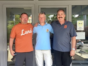 2017. májusában Szvoboda László támogató barátunk felhívott, hogy az édesapja USA-ban élő gyerekkori barátjának fia, Tatár Tamás és barátja„Dvain” – aki Michigan állambeli rendőr kolléga – júniusban Magyarországra látogat, többek között Szombathelyre is. Kérdezte, megmutatnám-e neki a szombathelyi rendőrséget és a rendőrségtörténeti gyűjteményünket. Június 13-án délelőtt találkoztunk és körbevezettem őket, megmutatva a relikviákat és természetesen a bővülő retro járműparkunkat is. Szűkre szabott idejükbe – egy óra állt rendelkezésünkre a következő lefoglalt időpontjukig – még egy kis beszélgetés az IPA Irodán is belefért egy kis ajándék átadással és a kapitányság előtti fotózkodással.