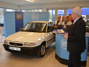 December 20-án Ungvári Márton barátunk által biztosított mikrobusszal keltünk útra, mivel a szállítandó dolgok és személyek nem fértek volna be egy személyautóba. Odaérkezés után még a szalonberendezés apró igazítása volt csak hátra és a Marsal’ Kft. tulajdonosa, Marton György házigazdai fogadóbeszédével nyitottuk meg az autó átadási ünnepséget, mely után Szedlák János szervizvezetőtől vehettem át az autó kulcsait és iratait. Ezt követően Erhardt László r.ezredes – Vas Megyei Rendőr-főkapitányság gazdasági főkapitány-helyettese –, majd Borbély Zoltán r.alezredes – Veszprém Megyei Rendőr-főkapitányság rendészeti főkapitány-helyettese – mondott üdvözlő beszédet. Végül Dr.Simon Tamás r. dandártábornok, az IPA Magyar Szekció elnöke olvasott fel egy (a helyzetre aktualizált) humoros történetet Matenak bloggertől, mely felöleli a rendőr Opel Astrák történetét. Mivel az Astránk felújítása során sem az Opel Szentgotthárd Kft-nél, sem az Opel Magyarországnál, sem a típusengedélyt kiadó közlekedés felügyeletnél nem volt feltalálható a specifikációk dokumentációja, és az átadás előtt két hónappal sikerült mégis feltalálni egy másolatot (hol máshol, mint az Opel Marsal ’Kft-nél egy véletlen folytán), így egy másolatot adtunk át részükre, hogy megőrizzék az utókornak. Az ebéd előtt zárásként mindenkinek egy 2017. évi saját terveztetésű – természetesen rendőrautókat tartalmazó – egyedi IPA naptárral köszöntük meg a támogatásukat, segítségüket, munkájukat.